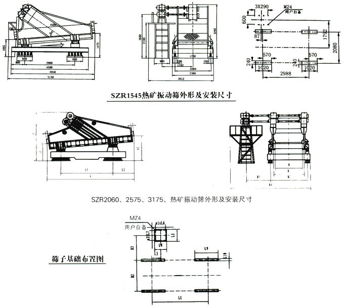 SZR系列熱礦篩均配備二次隔振系統(tǒng),對(duì)基礎(chǔ)的動(dòng)負(fù)荷較小,使用于有隔振減要求,安裝高度允許的場(chǎng)合。
