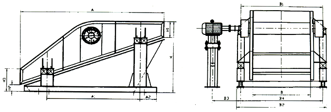 該系列篩機為座式安裝。篩面傾角的調整可通過改變彈簧支座位置高度來實現(xiàn)。