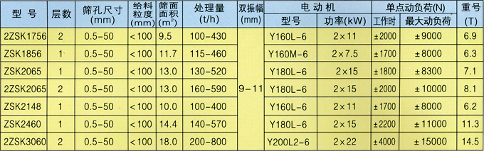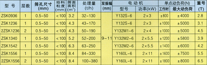 ZSK型振動篩為直線運動,全系列共有二十四種規(guī)格,可供選煤、選礦、發(fā)電、制糖、制鹽等工業(yè)部門,對中細粒度物料進行干濕式篩分、脫水、脫介、脫泥。結構先進、堅固耐用、振動噪聲小。